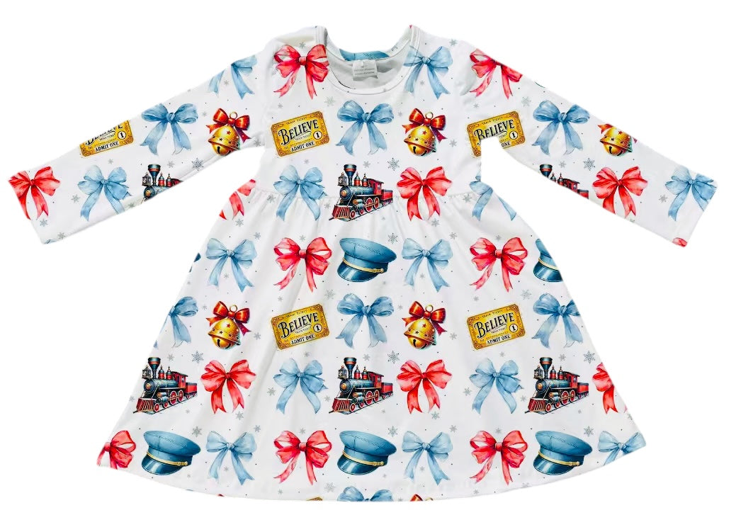 HCK EXCLUSIVE- Coquette Bow Polar Express Long Sleeve Dress