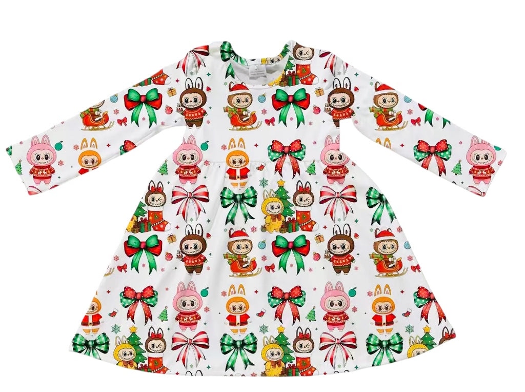HCK EXCLUSIVE- Long Sleeve Labubu Coquette Christmas Dress