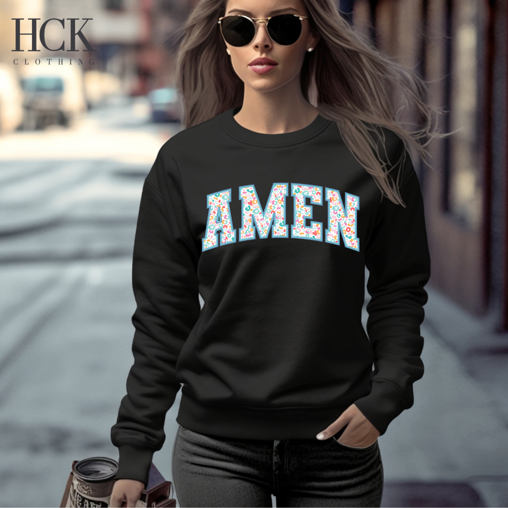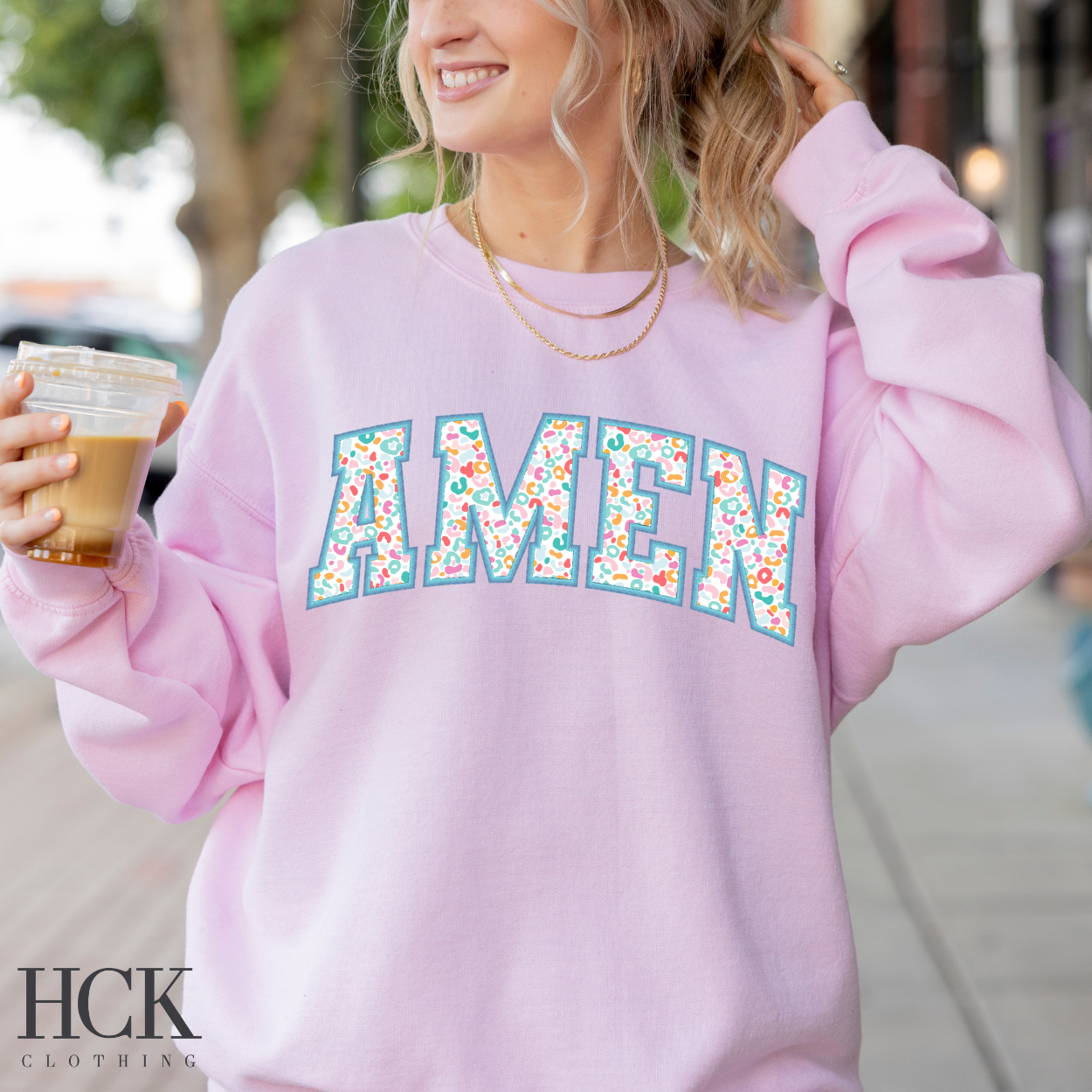 Pastel Leopard Blue Amen Crewneck Sweatshirt