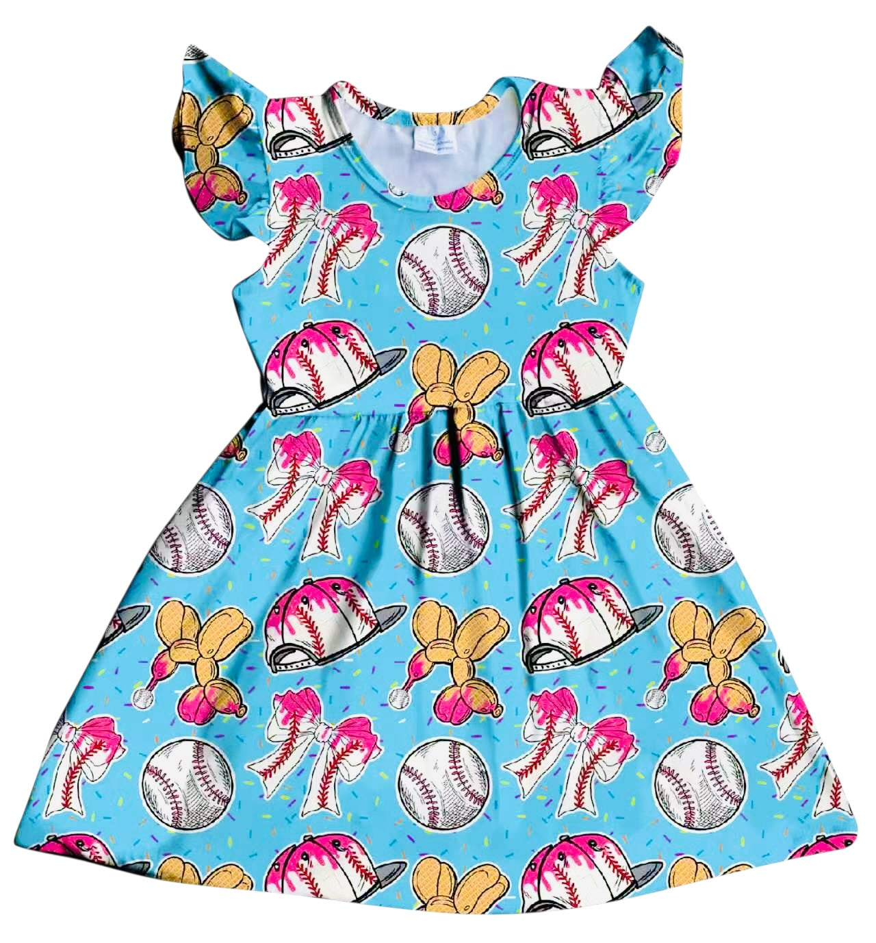 HCK EXCLUSIVE- Baseball Drip Flutter Sleeve Dress