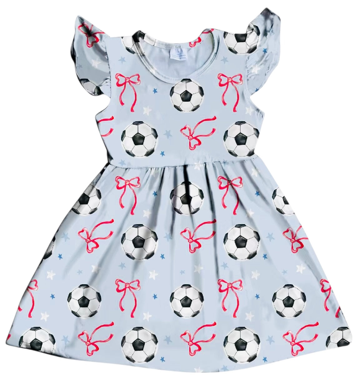 HCK EXCLUSIVE- Soccer & Bows Flutter Sleeve Dress