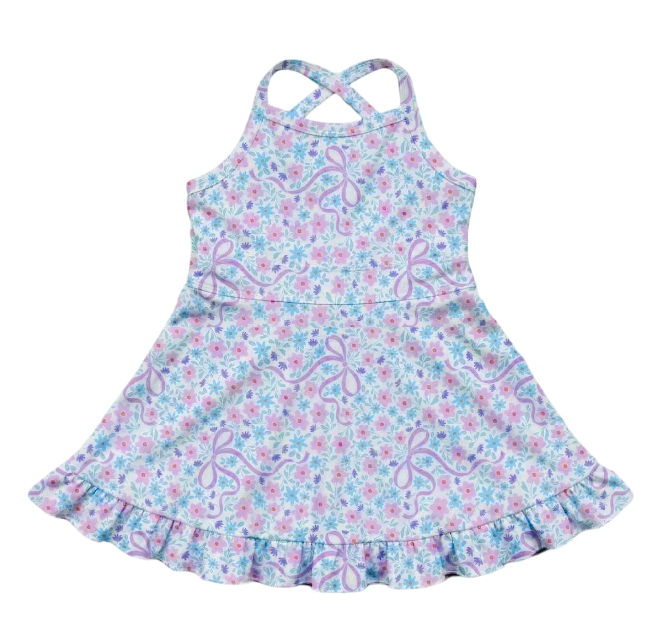 Purple Coquette Bow Floral Athletic Style Skort Set