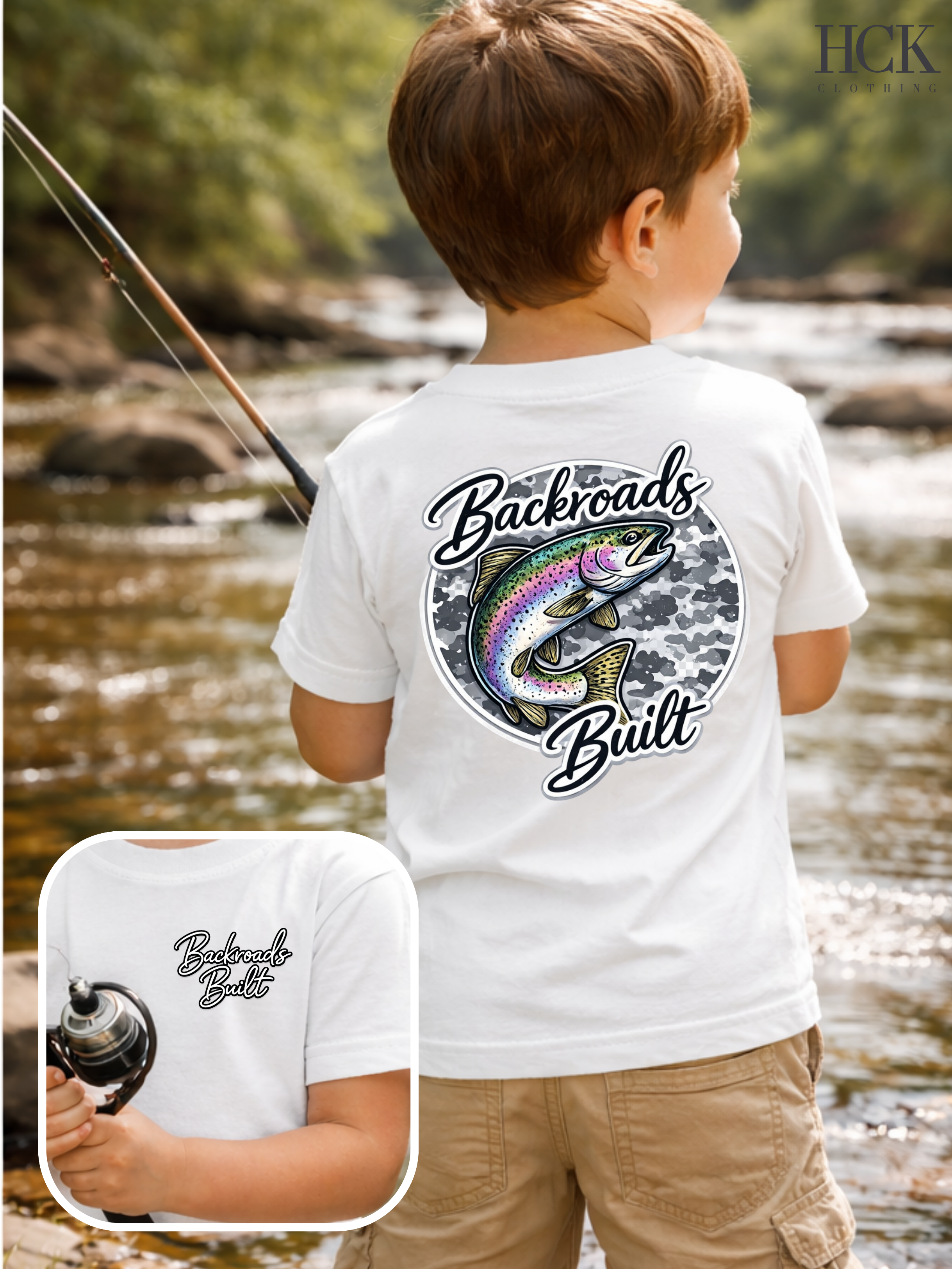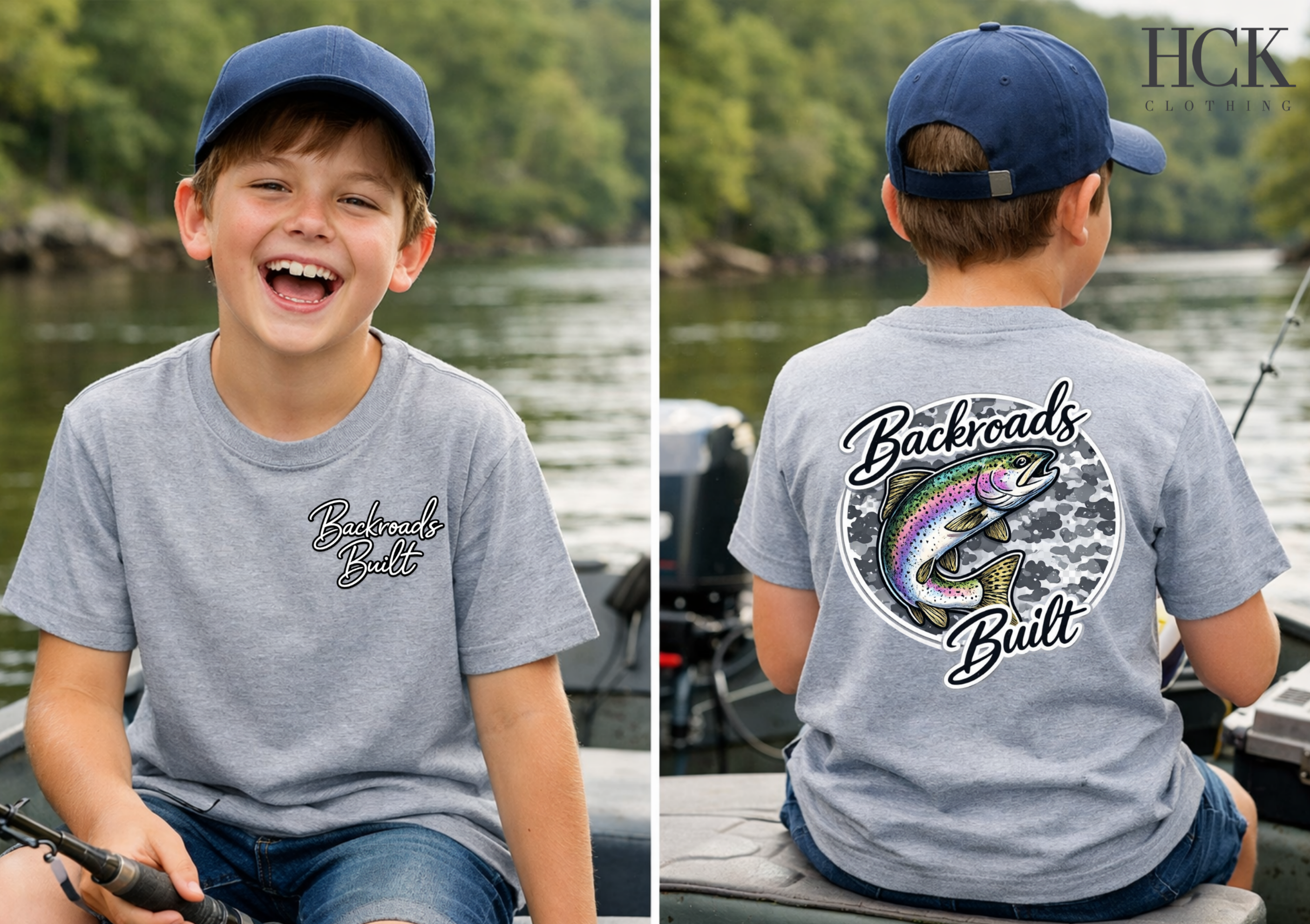 Backroads Built Gray Camo Rainbow Trout T-Shirt - is backordered and will ship as soon as it is back in stock.