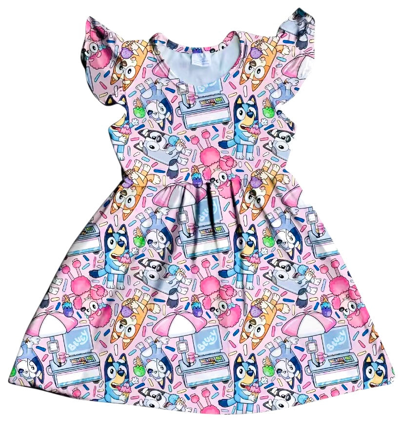 HCK EXCLUSIVE- BIuey Ice Cream Truck Flutter Sleeve Dress