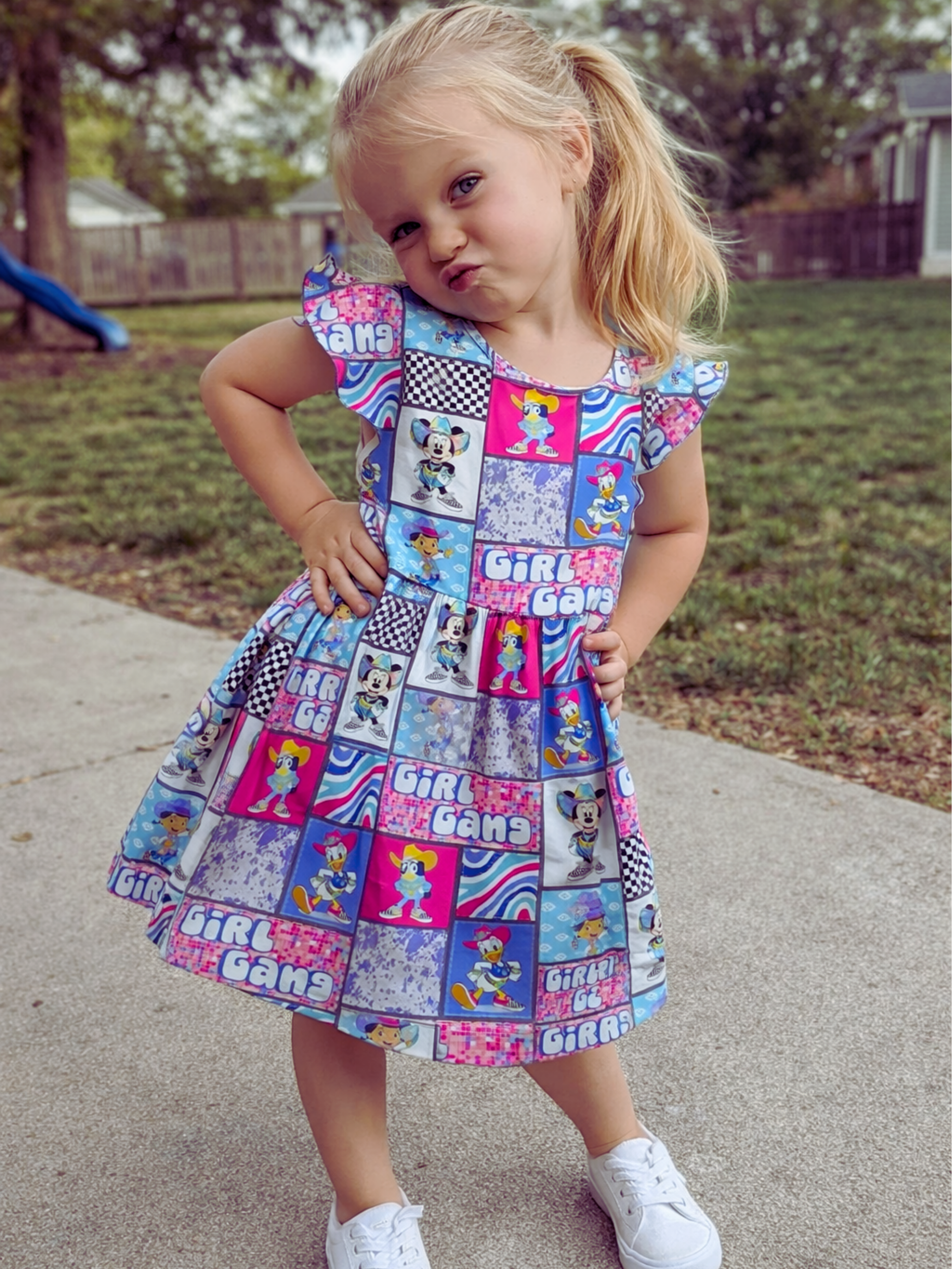 HCK EXCLUSIVE- Girl Gang Block Flutter Sleeve Dress - is backordered and will ship as soon as it is back in stock.