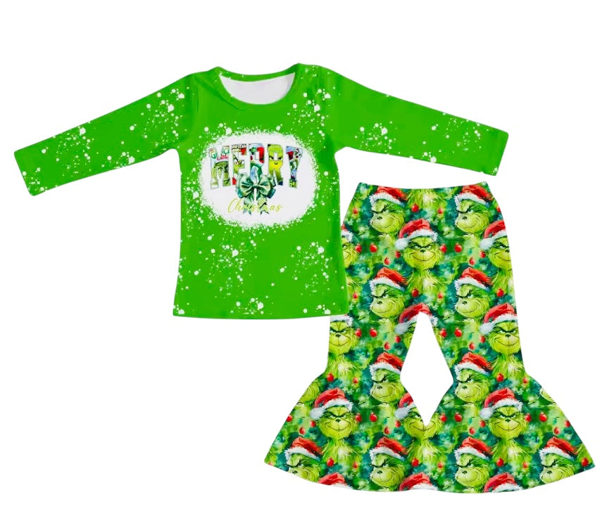 HCK EXCLUSIVE- Grinchy Merry Christmas Bell Bottoms Outfit