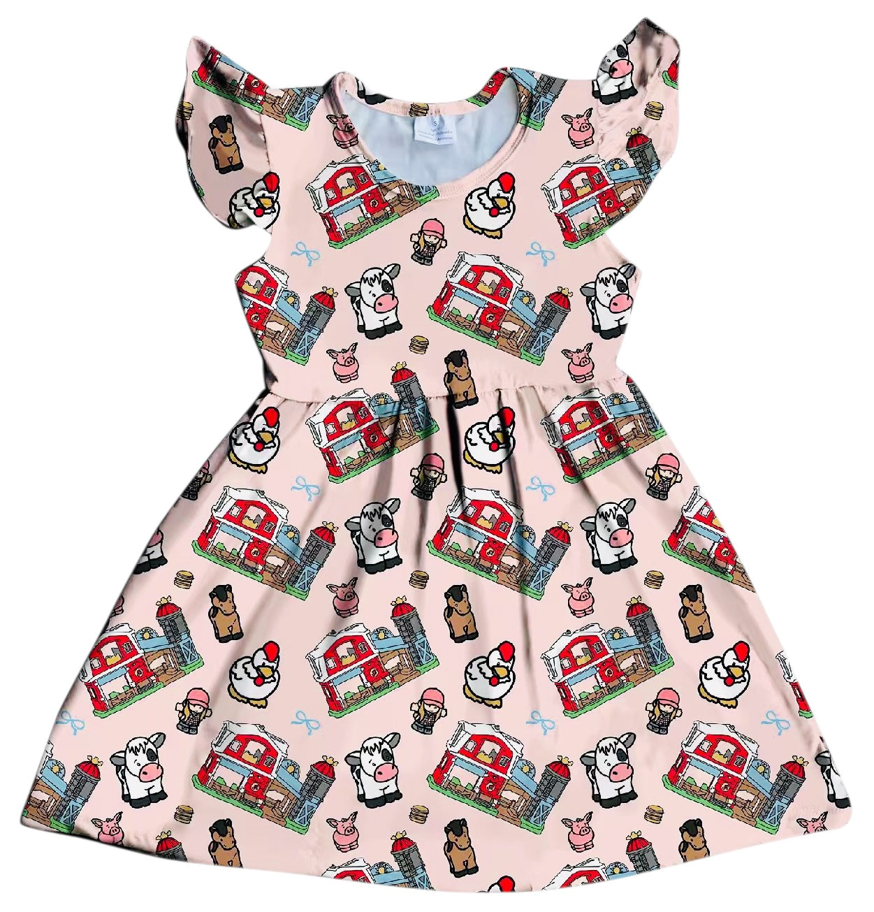 HCK EXCLUSIVE- Little People Farm Flutter Sleeve Dress