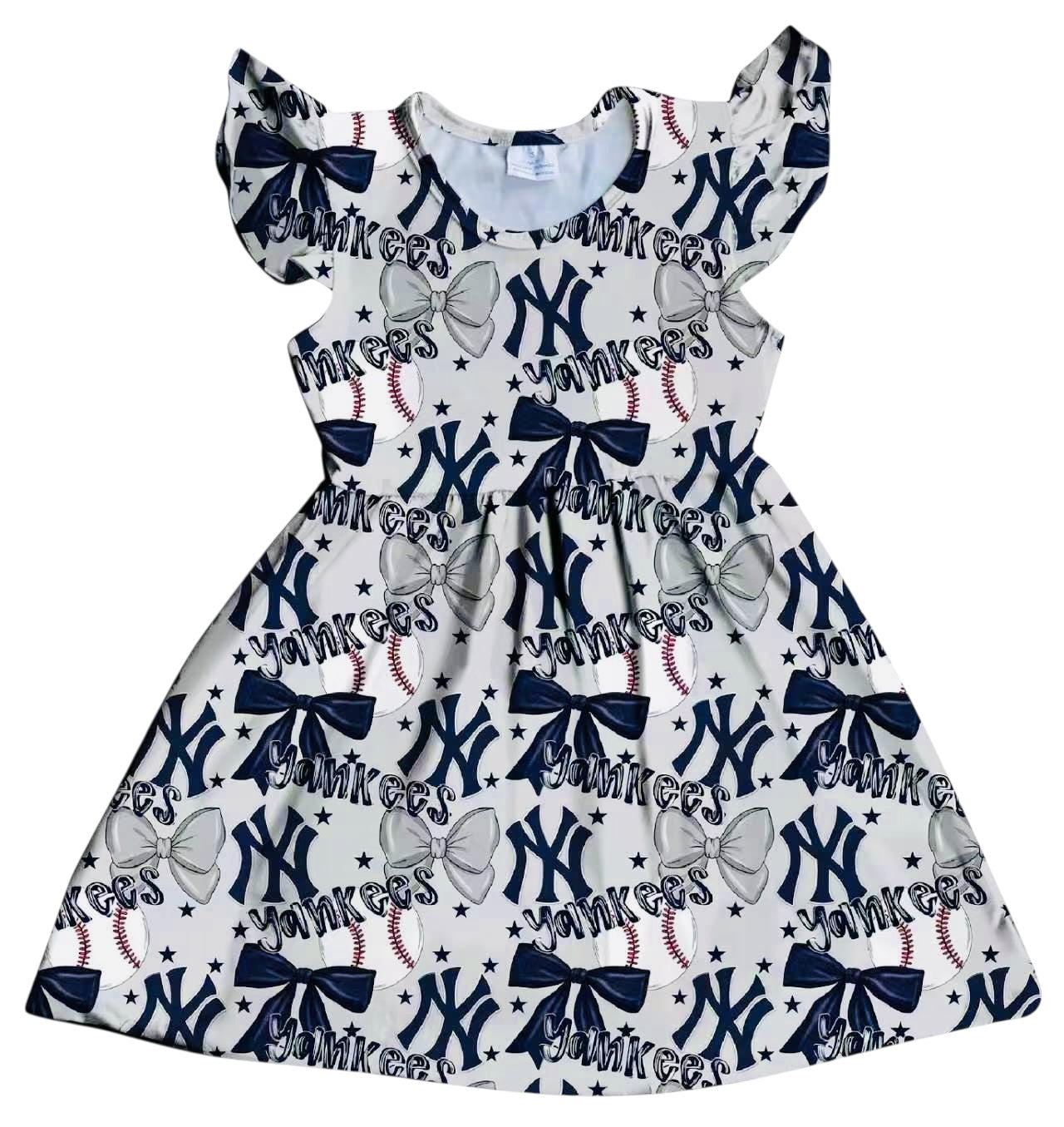 HCK EXCLUSIVE- Y@NKEES Baseball Flutter Sleeve Dress