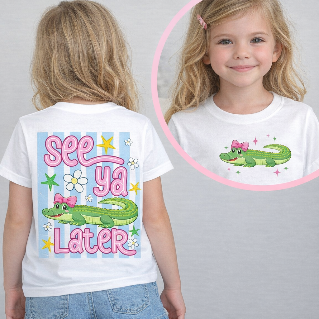Pink Bow & Stripe See Ya Later Alligator Front & Back T-Shirt