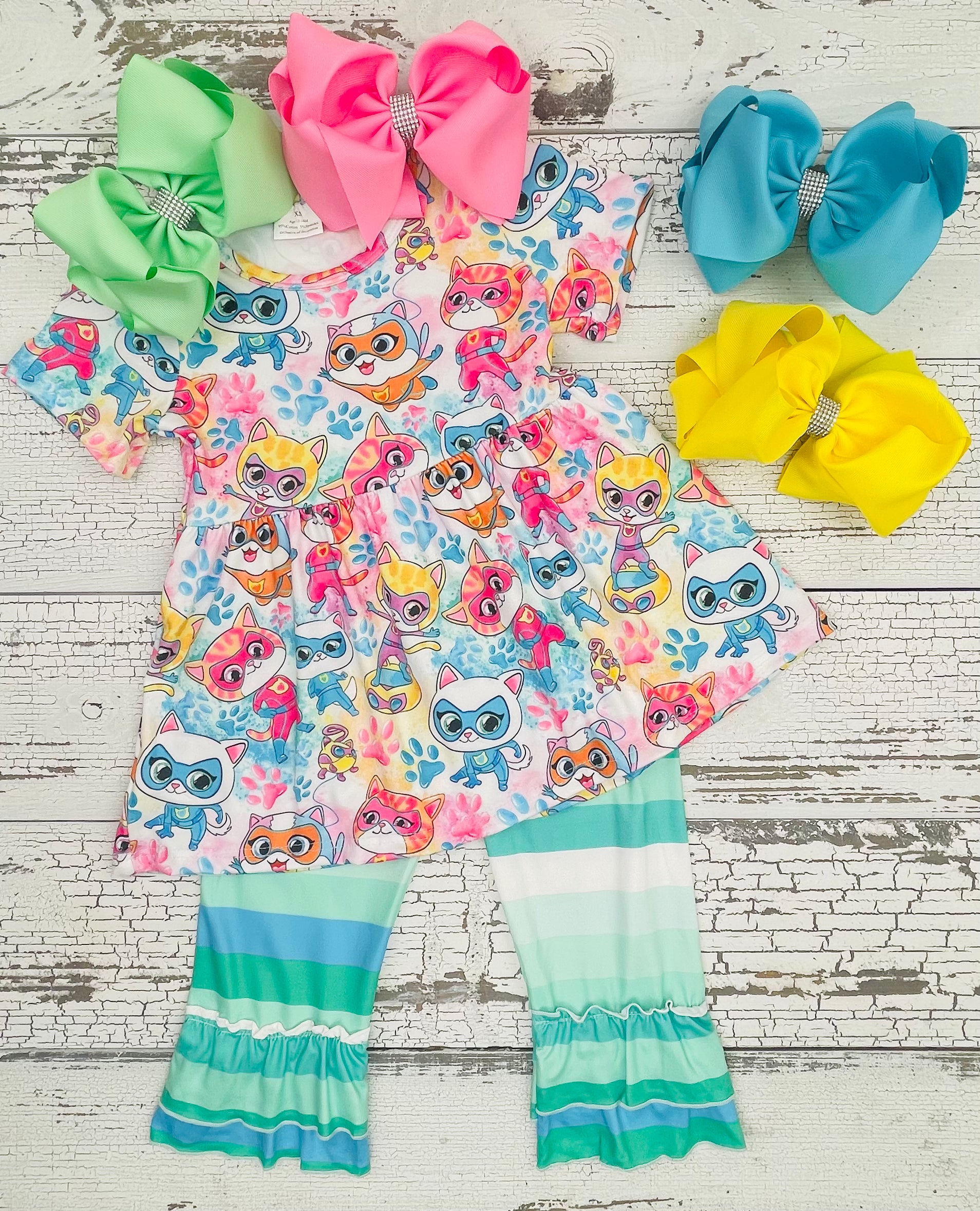 Super Kitties Stripe Green Ruffle Pants Outfit