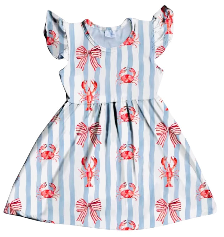 HCK EXCLUSIVE- Coastal Cutie Crab & Lobster Flutter Sleeve Dress