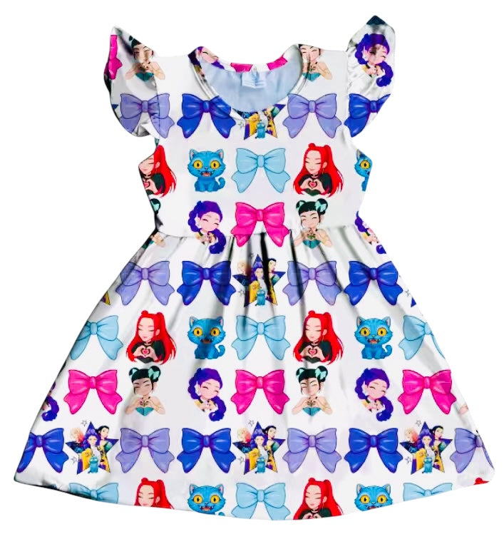 HCK EXCLUSIVE- K-P0P Bow Huntr/x Flutter Sleeve Dress