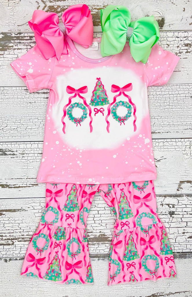 Pink Preppy Christmas Lightly Flared Bells Outfit