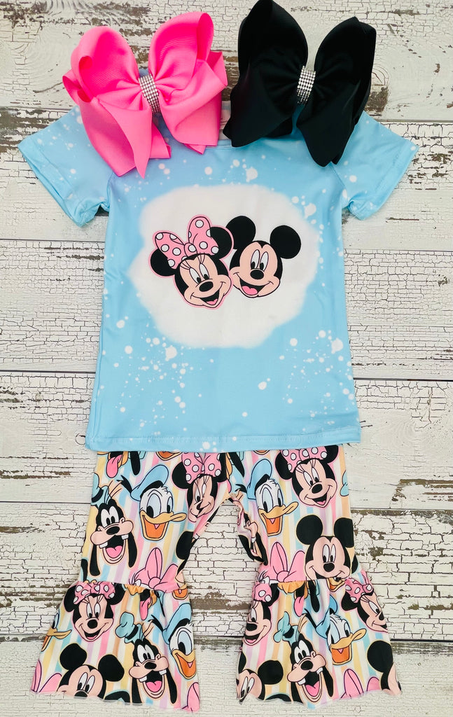 Blue Minn*e & Mick*y Lightly Flared Bells Outfit