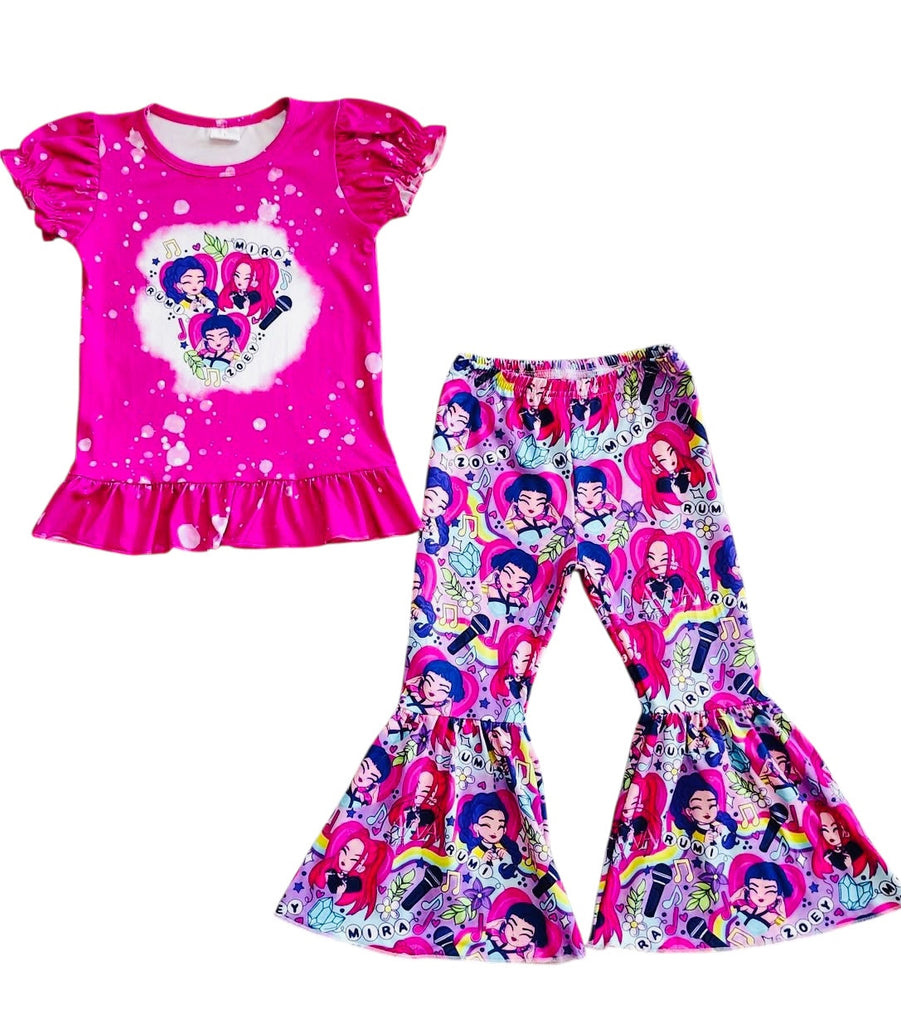 HCK EXCLUSIVE- K-P0P Huntr*x Pink Short Sleeve Pink Trimmed Pajamas