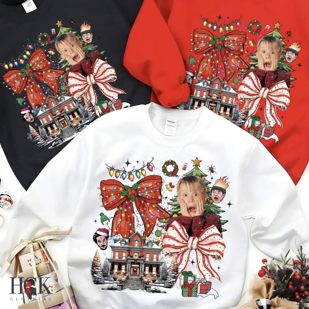 KIDS- Home Alone Snack Cake Bow Crewneck Sweatshirt - is backordered and will ship as soon as it is back in stock.