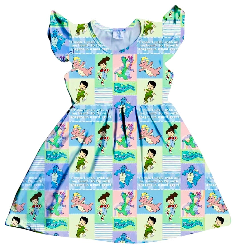 HCK EXCLUSIVE- Dragon Tales Flutter Sleeve Dress