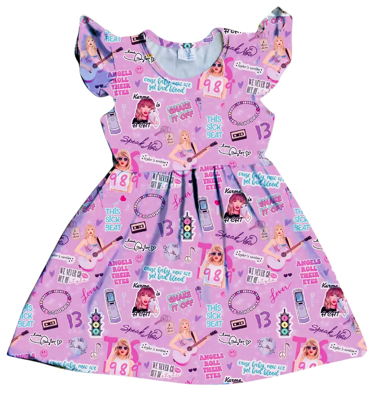 HCK EXCLUSIVE- Pink Swif*ie Flutter Sleeve Dress