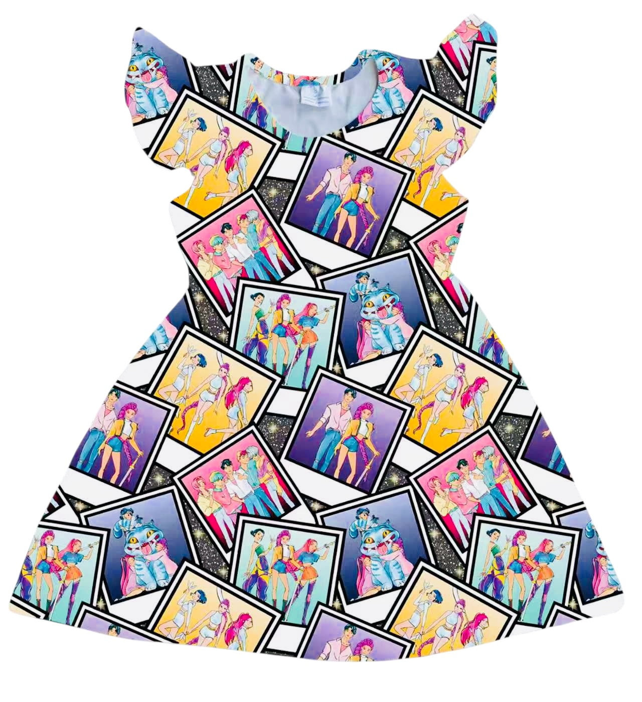 HCK EXCLUSIVE- K-P0P Polaroid Flutter Sleeve Dress