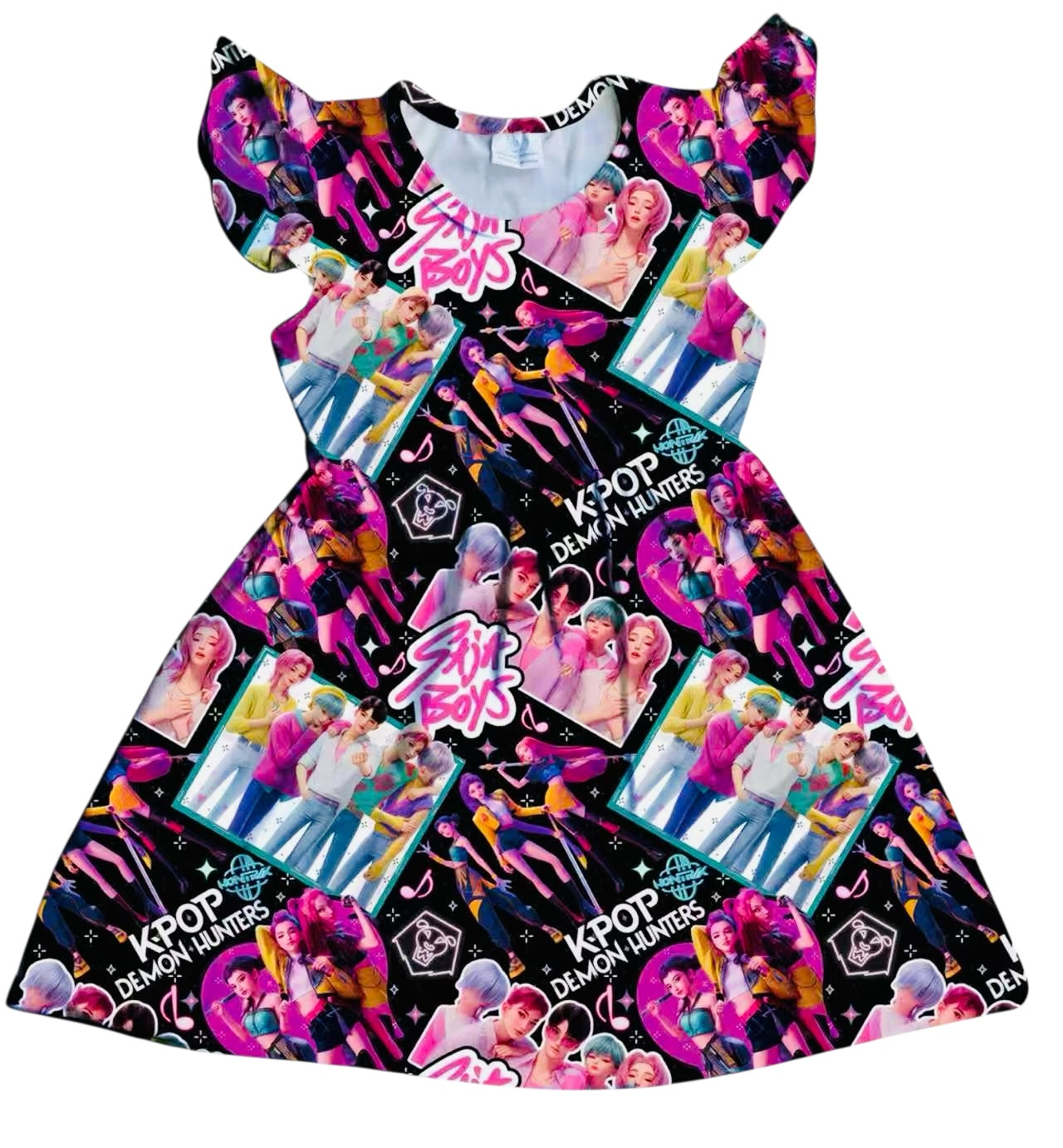 HCK EXCLUSIVE- K-P0P Saj* Boys & Huntr*x Flutter Sleeve Dress