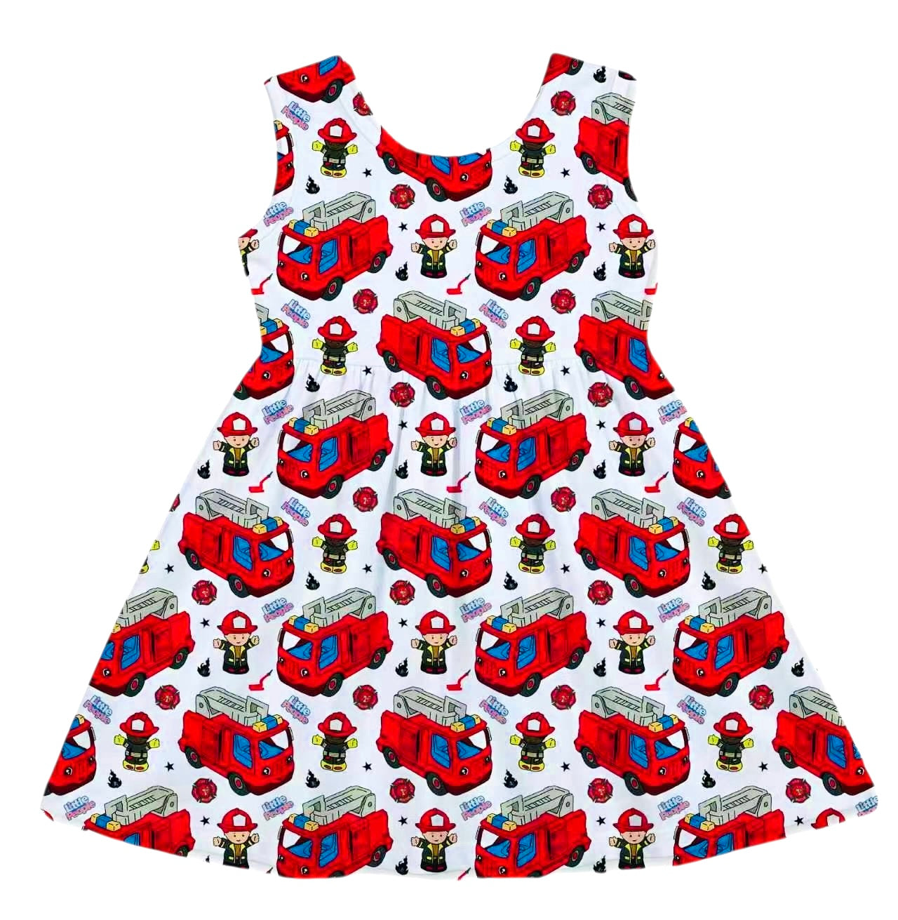 HCK EXCLUSIVE- Little People Fire Truck Sleeveless Tank Dress