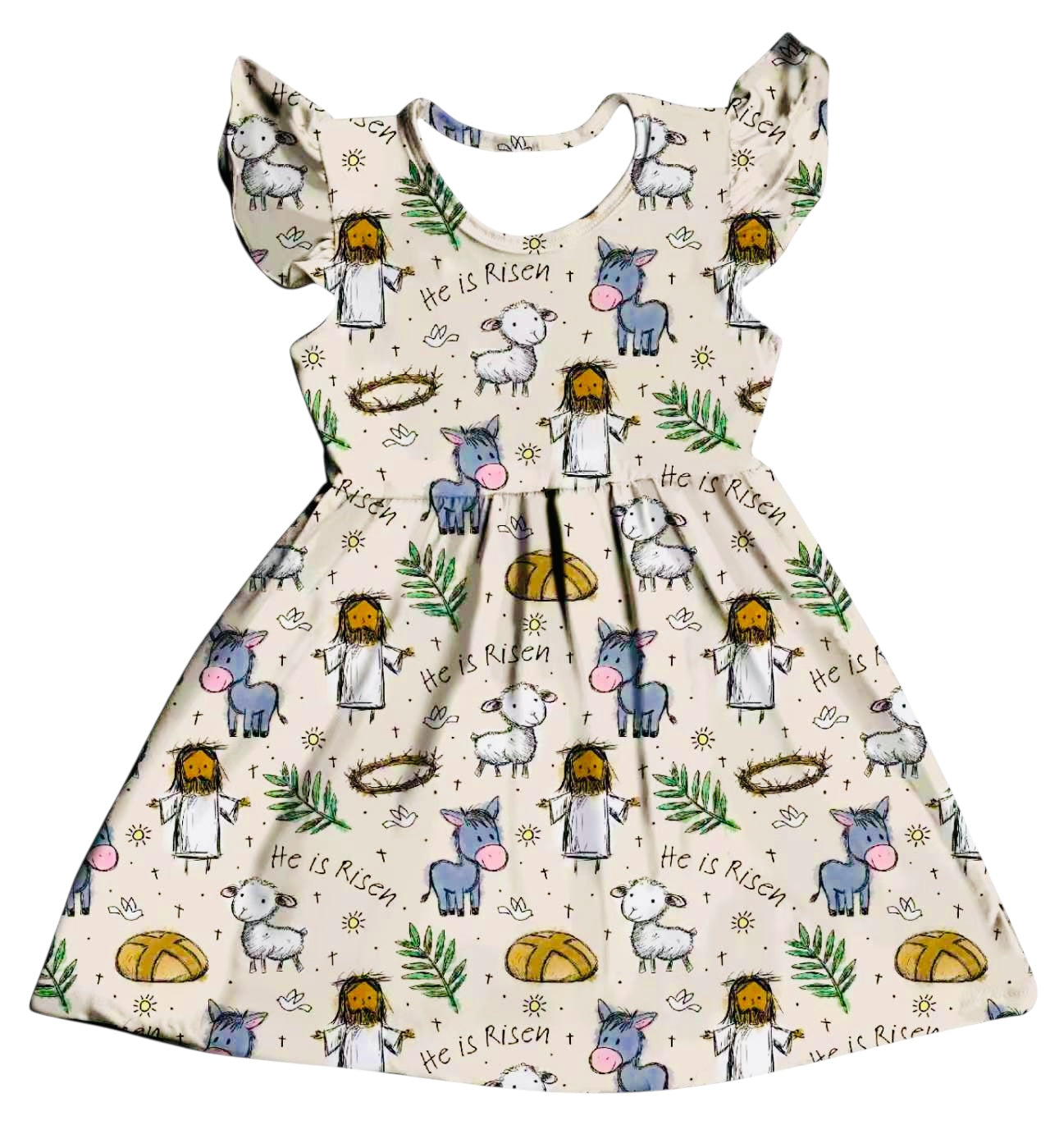 HCK EXCLUSIVE- He Is Risen Easter Flutter Sleeve Dress