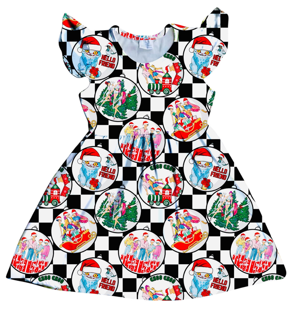 HCK EXCLUSIVE- K-P0P Retro Christmas Flutter Sleeve Dress