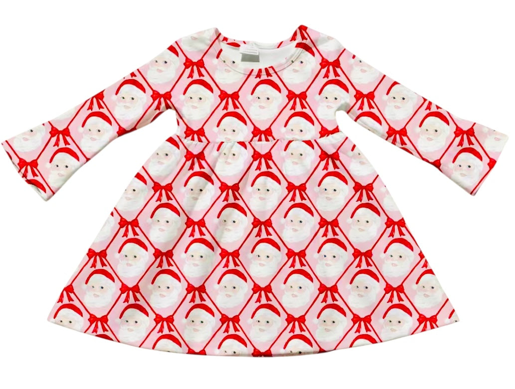 HCK EXCLUSIVE- Preppy Red & Pink Coquette Santa Christmas Long Sleeve Dress